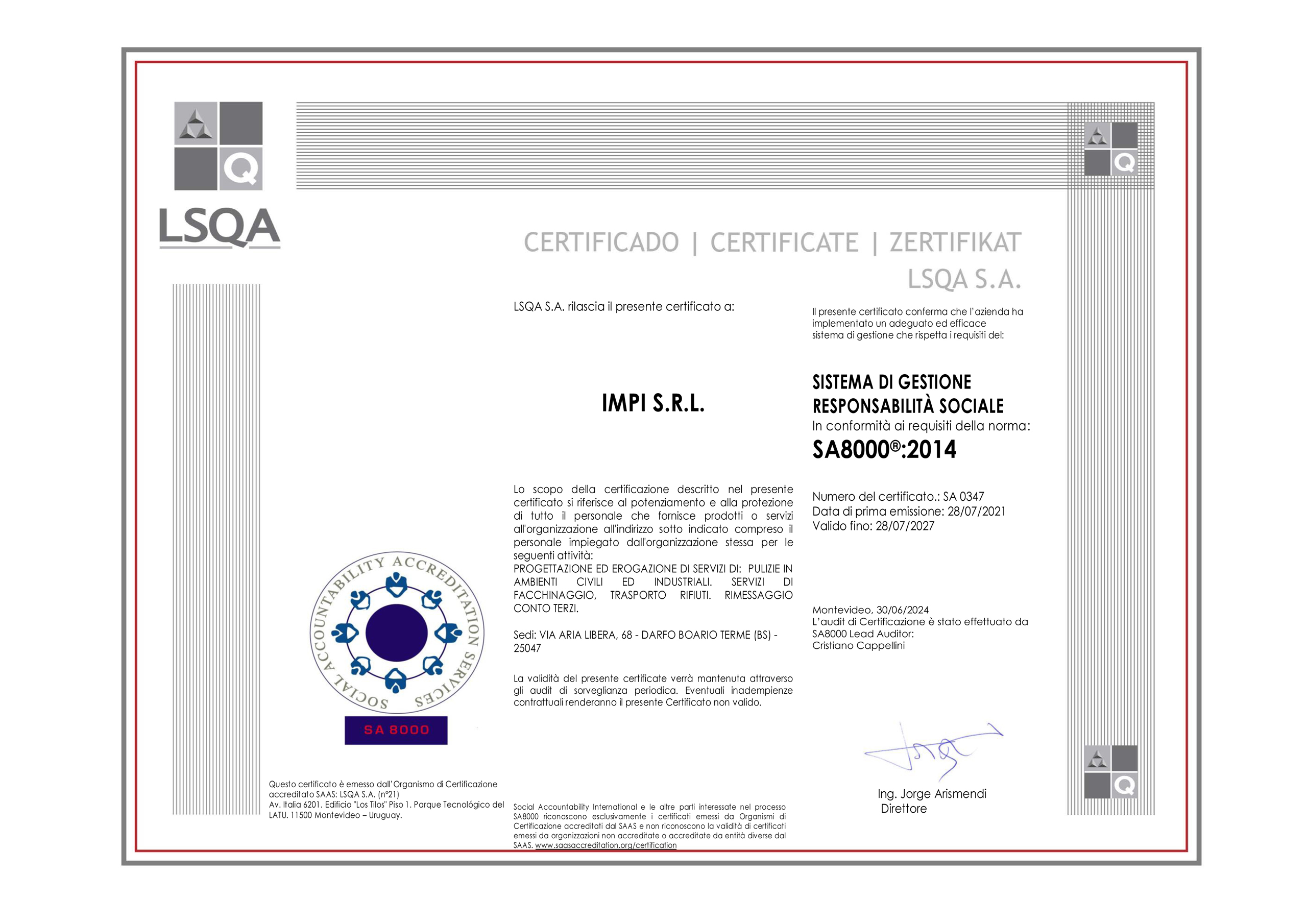 Lettera Informativa SA8000